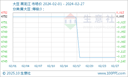 据生意社商品行情分析系统显示:2月国产大豆行情继续走弱,整体小幅下跌。2月1日,国产大豆市场均价4752元/吨,2月26日,国产大豆市场均价4746元/吨,价格下跌0.13%。