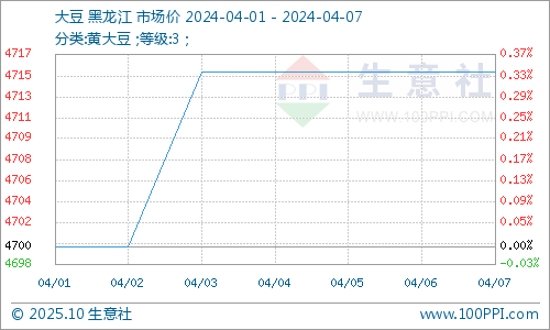 据生意社商品行情分析系统显示:4月以来,国产大豆行情整体平稳运行,4月1日,国产大豆市场均价4700元/吨,4月7日,国产大豆市场均价4716元/吨,价格下跌0.34%。